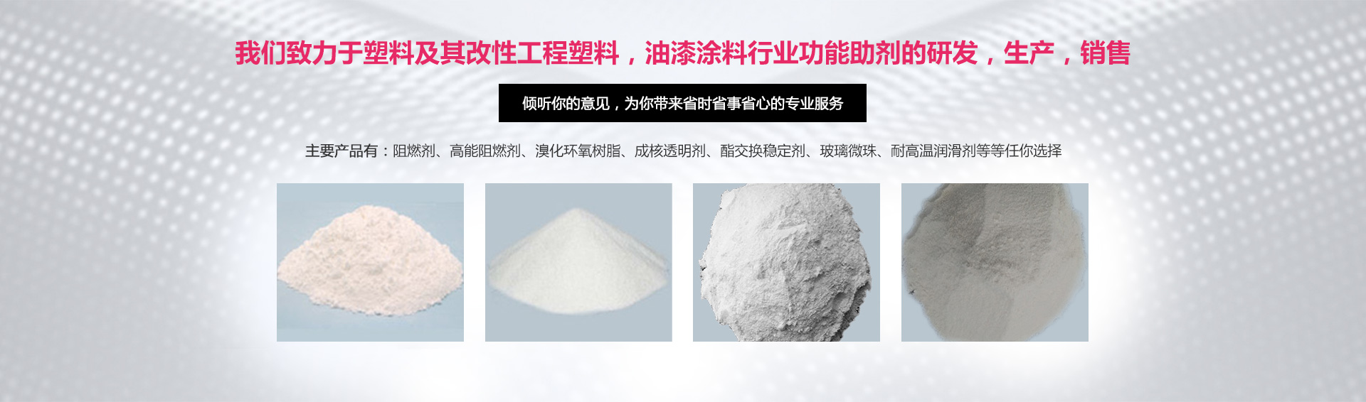 多年專注于阻燃原料,無鹵環(huán)保阻燃劑,環(huán)保阻燃母粒的研發(fā)和生產。公司產品阻燃劑,阻燃母粒,尼龍阻燃劑 , 無鹵阻燃劑 , 玻璃微珠 , 灼熱絲, 被廣泛應用于工程塑料阻燃改性、注塑、擠出等等行業(yè)領域。